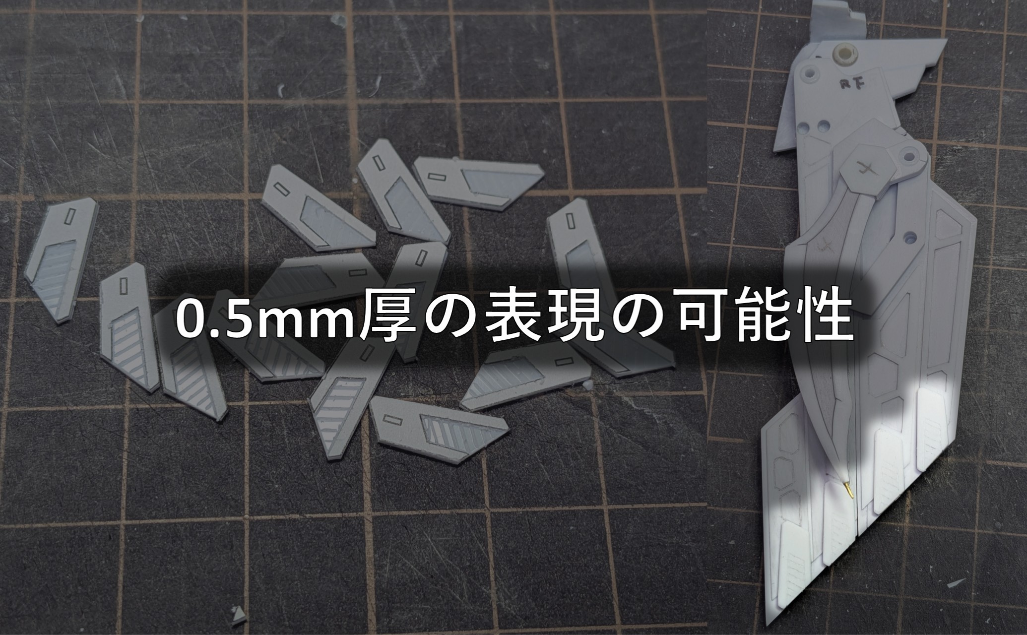 私も0.5mmプラ板は薄く、決めた形状に切り出して使う程度にしか使えずその板そのものにさらにディテールを入れ込むのは難しいと感じていました。