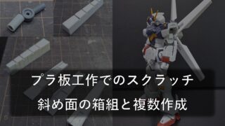 X11ファータモガーナフルクロス プラ板工作でのスクラッチ 斜め面の箱組と複数作成 プラ板を使って、斜めの面を箱組で複数作る方法について解説しています。今回でバックパックのベースは完成するので是非見てみてください。 2025.09.30 X11ファータモガーナフルクロス