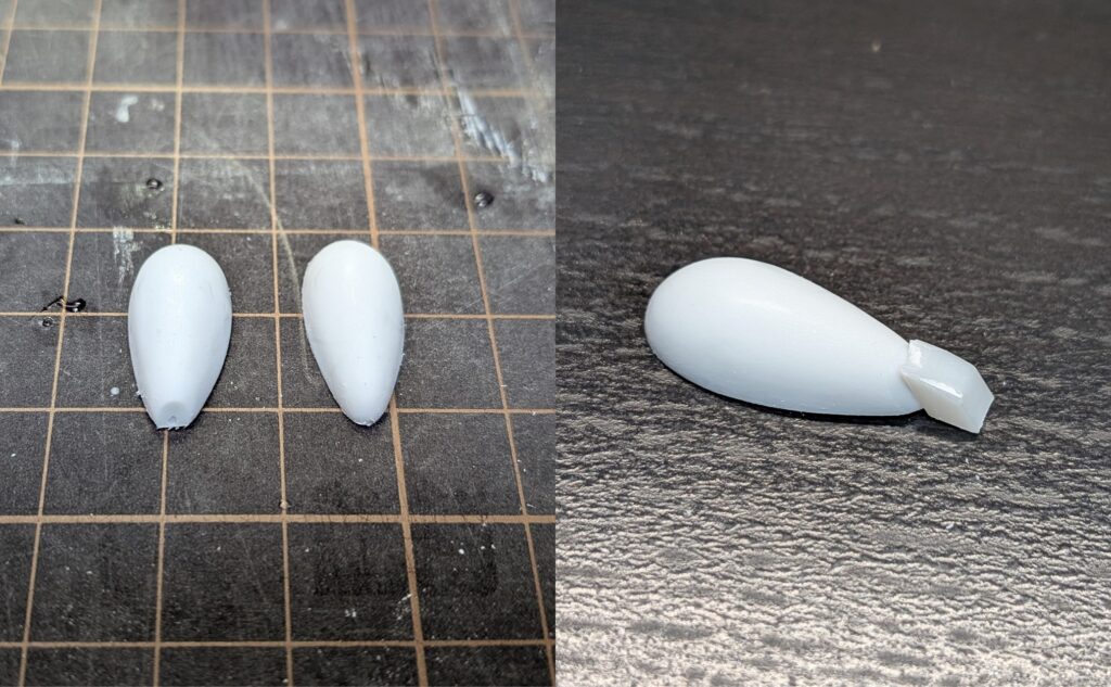 以上の工程により曲面パーツも仕上り、スラスター外装が完成しました。