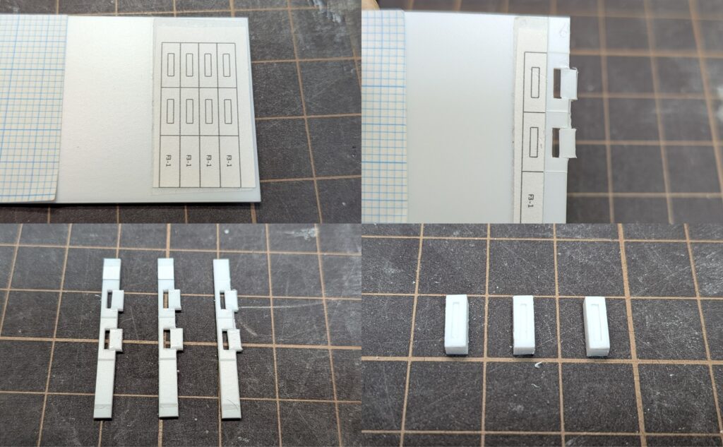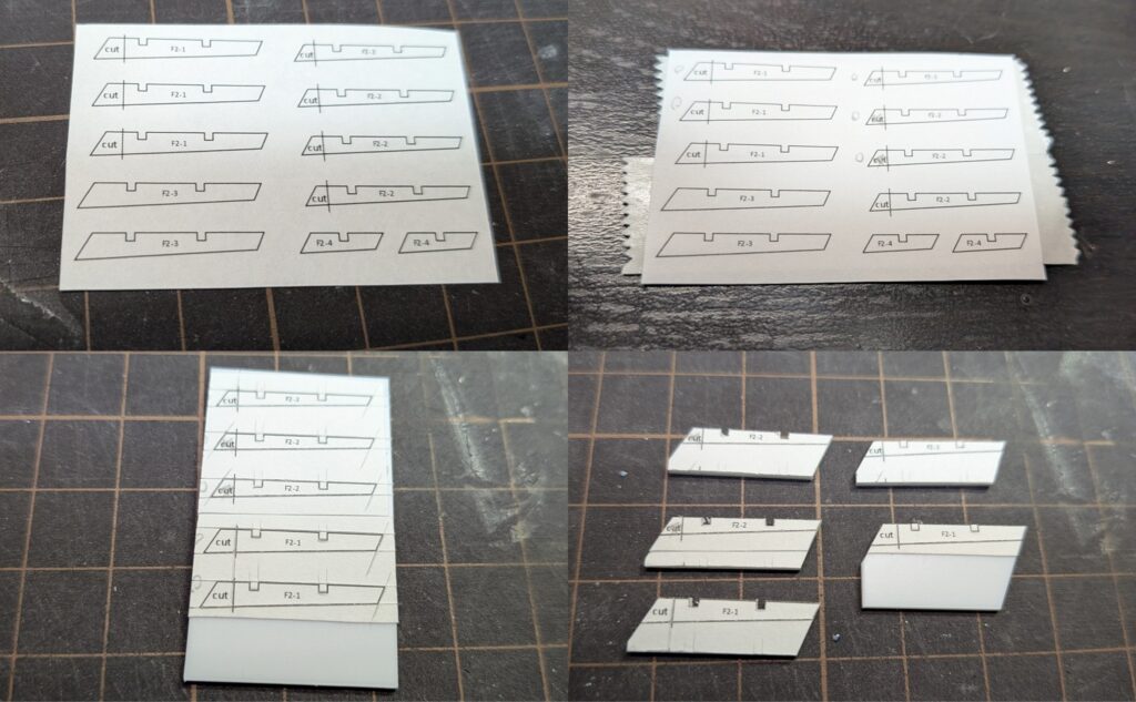 (左上) 図面を切り出してプラ板に貼り付けます