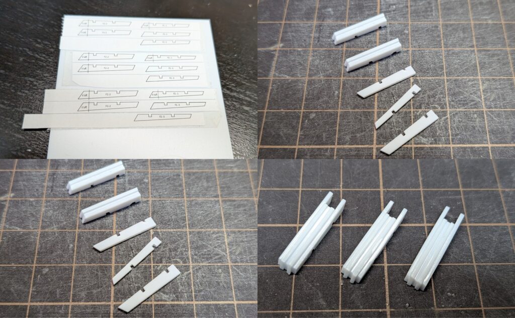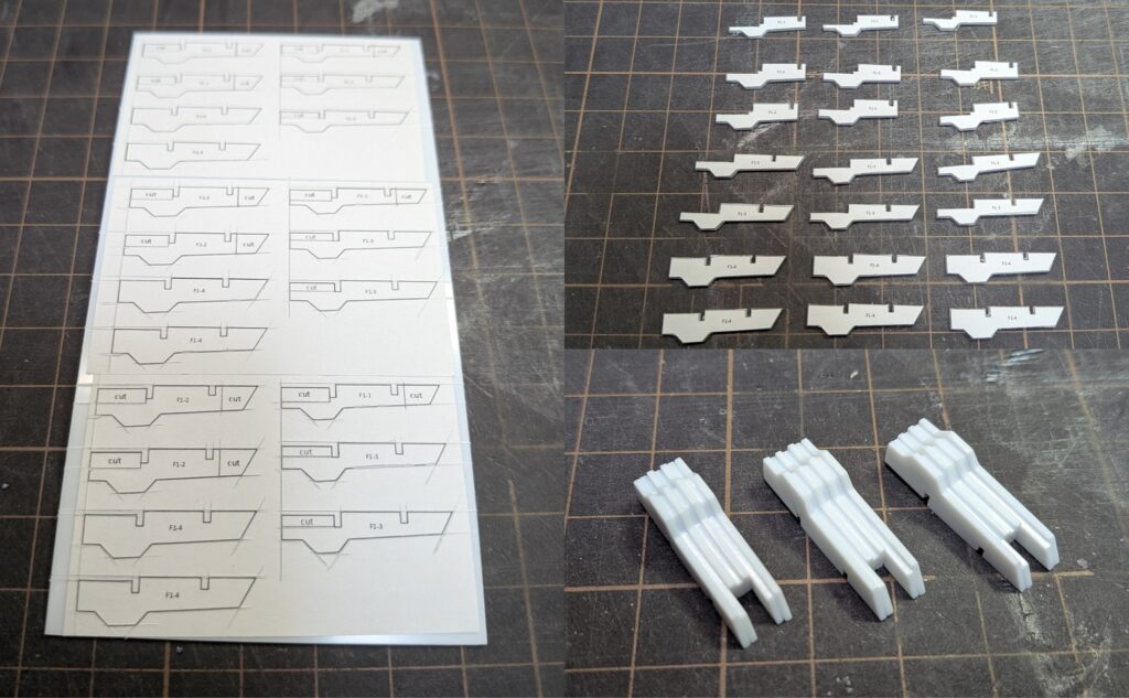 そのため1セット9枚(+小型フィン2枚)構成で図面を書いていましたが最終的に5枚のみ切り出しています。
