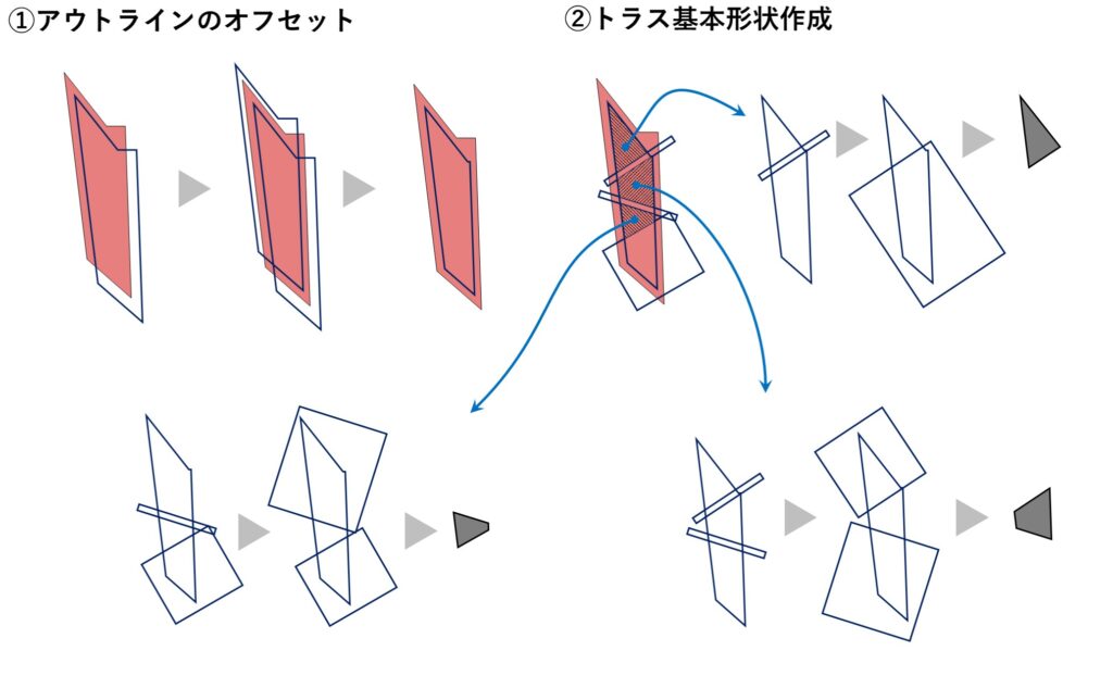 できたら区切りの図形をコピーし図形の統合を駆使してトラスの基本形状を作っていきます。