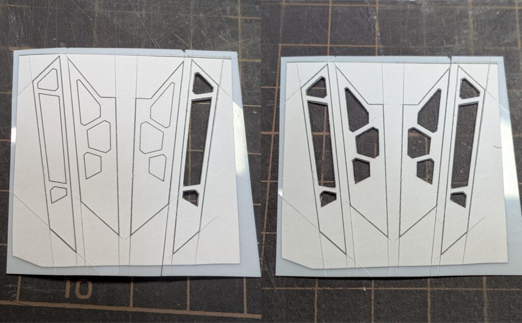 新品の歯を使って、0.3mmプラ板を切り抜くのであればフリーハンドで十分対応できるので効果的な組み合わせです。